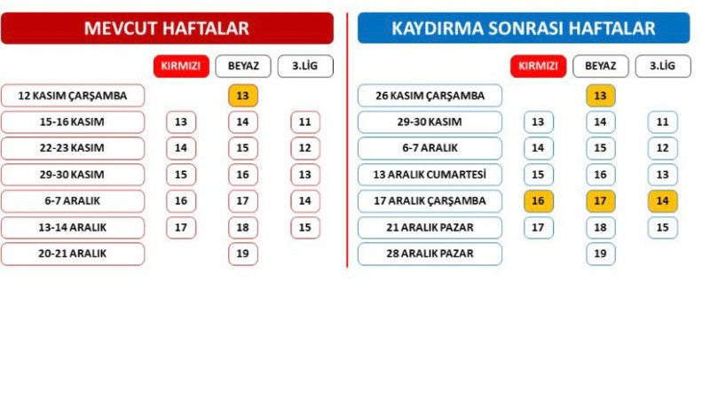 TFF’nin yeni takvimine göre, söz konusu müsabaka 26 Kasım Çarşamba günü aynı saatte oynanacak.